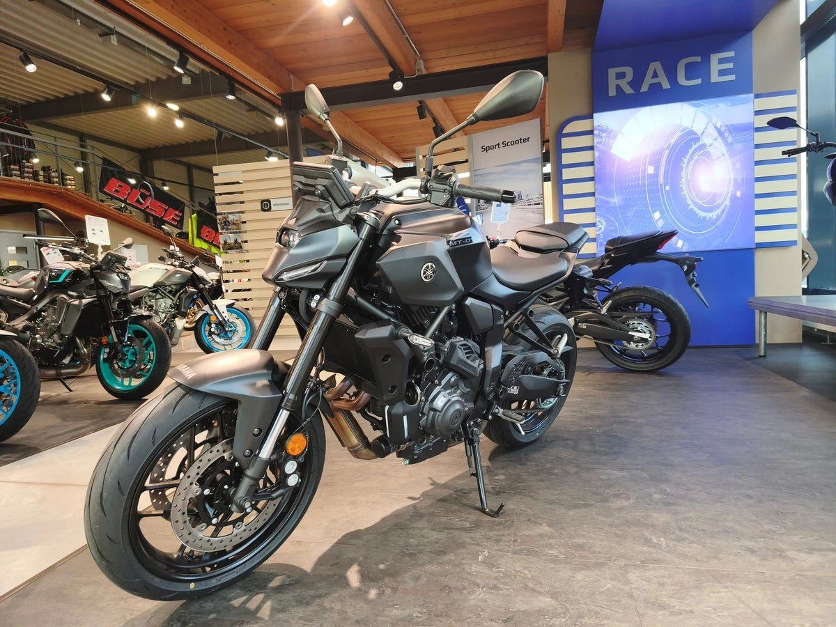 Die MT-07 gehört seit ihrer Vorstellung zu den meistverkauften Motorrädern in Europa - und das aus gutem Grund. Sie bietet puristische, aufregende Fahrerlebnisse, inspiriert von den Subkulturen japanischer Großstadtstraßen. Die MT-07 ist bekannt für ihr geringes Gewicht, ihr agiles Fahrverhalten und ihren drehmomentstarken CP2-Motor. Diese neueste Evolutionsstufe bietet ein neues Styling, ein aktualisiertes Fahrwerk und Technologien, die das Fahrerlebnis weiter verbessern. Alles, was die MT-07 zu einem der wichtigsten Motorräder des letzten Jahrzehnts gemacht hat, bleibt unangetastet: Spaß mit einem Grinsen im Gesicht. Yamaha MT-07 Y-AMT Vorführer aus 2025 mit wenig Kilometern auf dem Tacho Wir sind Yamaha und Suzuki Vertragshändler im Norden von Schleswig-Holstein. - Verkauf von Neufahrzeugen (Yamaha und Suzuki) - Vertragswerkstatt (Yamaha und Suzuki) - Gebrauchtmotorräder und Roller - Inzahlungnahme - Finanzierung - Lieferung deutschlandweit auf Anfrage Unsere allgemeinen Geschäftsbedingungen finden Sie unter http://www.raudzus.de/de/ueber_uns/AGB.php